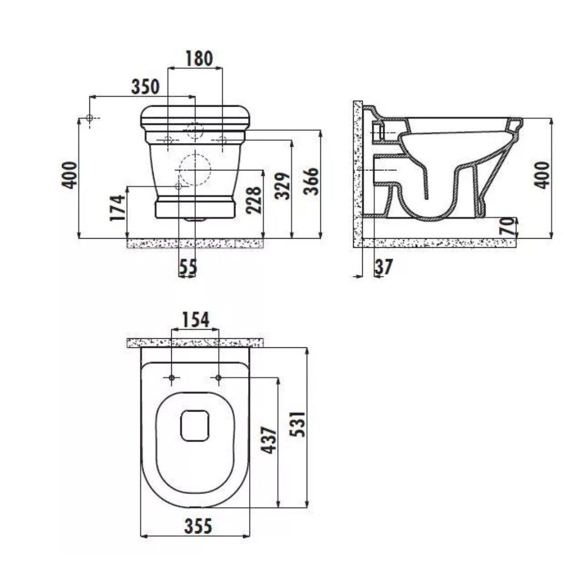 - Укороченный унитаз:нет