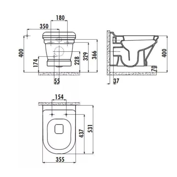 Подвесной унитаз коллекции Creavit Antik изготовлен из экологичного высокопрочного материала - санфарфора.