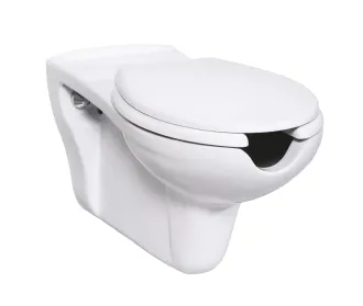 Подвесной унитаз для людей с ограниченными возможностями изготовлен из экологичного высокопрочного материала - санфарфора.