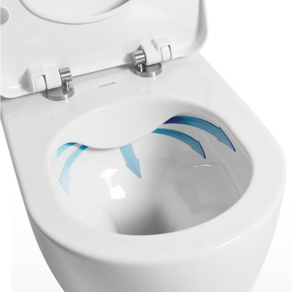 Безободковый подвесной унитаз коллекции Creavit Free изготовлен из экологичного высокопрочного материала - санфарфора.