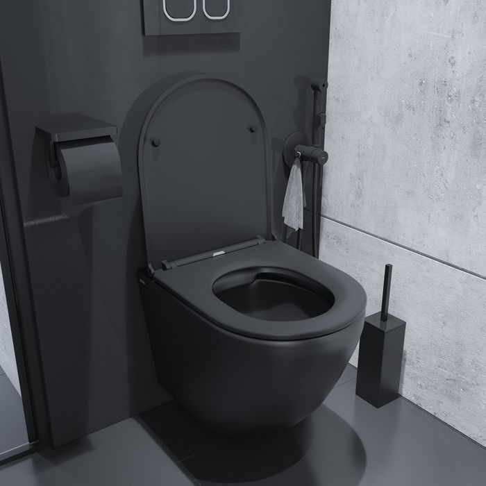 Черное сиденье IDDIS® из матового дюропласта внешне напоминает керамику. Благодаря своим конструктивным особенностям изделие устойчиво к царапинам, его легче поддерживать в чистоте.