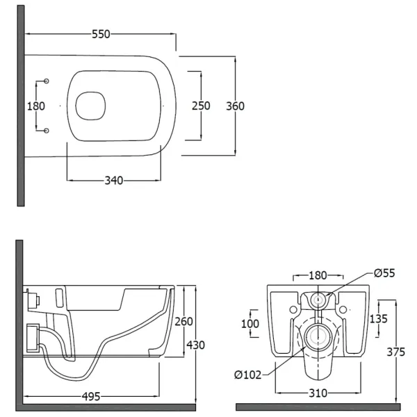 - Укороченный унитаз:нет