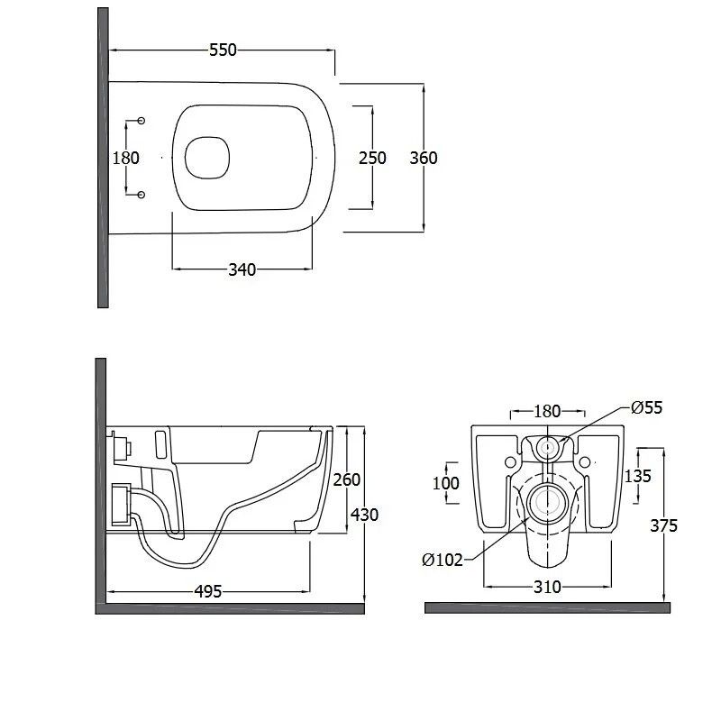 - Укороченный унитаз:нет