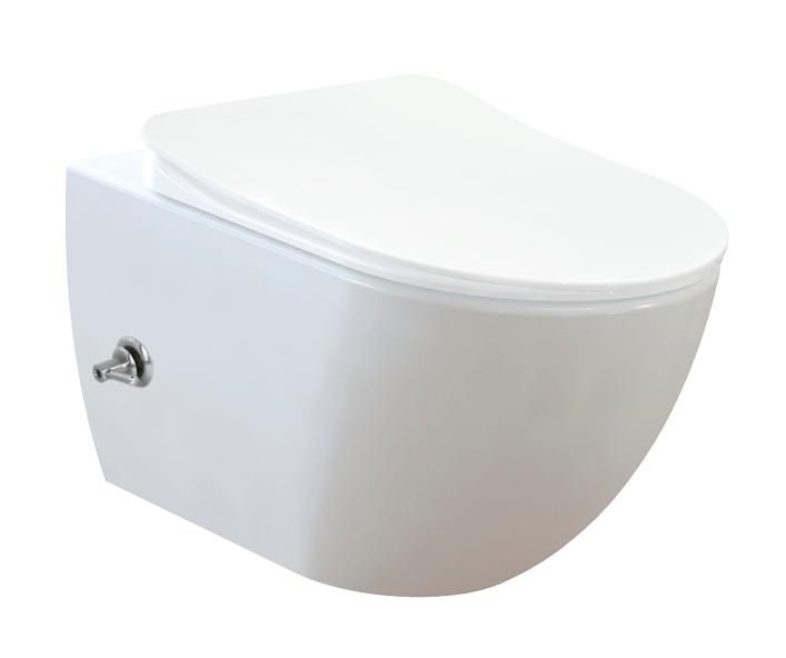 Унитаз оборудован встроенным смесителем для функции биде, что позволяет подключить его к холодной и горячей воде без использования дополнительных смесителей.