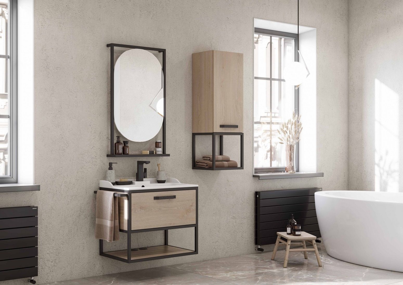 - Она идеально подойдет для того, чтобы расставить в ванной комнате четкие акценты в дизайне и обеспечить дополнительное место для хранения