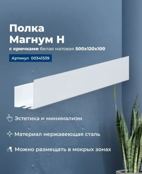 Полка Aquanet Магнум Н 50x12 белая матовая, с крючками — это компактное и стильное решение для организации пространства, которое сочетает в себе функциональность и современный дизайн. Вот ее основные характеристики и преимущества: