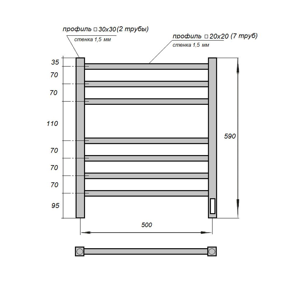 Полотенцесушитель электрический APEXTERMO Atlas AT00165BM 600x500 черный матовый