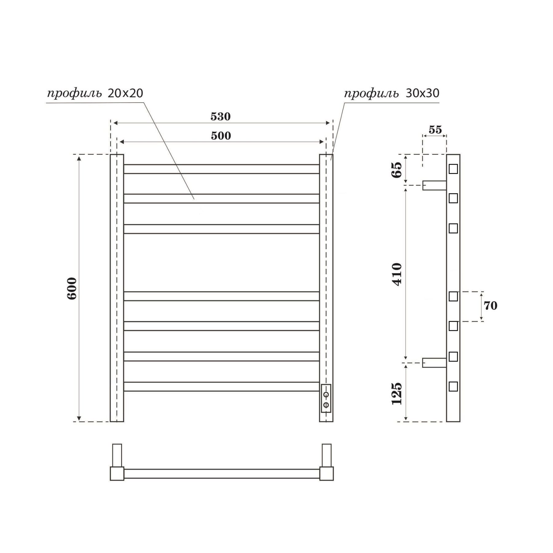 Полотенцесушитель электрический APEXTERMO Atlas AT00165GF 600x500 графит металлик купить