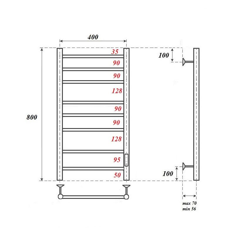 Полотенцесушитель электрический APEXTERMO Stella ST00184BM 800x400 черный матовый