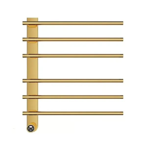 Полотенцесушитель электрический 520*614 мм (золото шлифованное). С помощью электронной панели управления можно задать оптимальный режим нагрева полотенцесушителя в пределах от 45 до 60 градусов. С влагозащитой IPX4, полотенцесушитель безопасно переносит брызги и дождь. Изготовленный из нержавеющей стали, этот полотенцесушитель гарантирует долговечность и устойчивость к коррозии. Полотенцесушитель электрический c терморегулятором. Тип монтажа: на стену. Подключение: скрытое. Электронная панель управления. Диапазон регулировки температуры 45-60 градусов. Таймер включения и отключения. Напряжение 220 вольт. Влагозащищенность IPX4. Мощность: 45 Ватт.