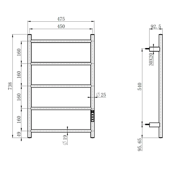 Полотенцесушитель электрический 475*738 мм (чёрный хром). С помощью электронной панели управления можно задать оптимальный режим нагрева полотенцесушителя в пределах от 45 до 60 градусов. С влагозащитой IPX4, полотенцесушитель безопасно переносит брызги и дождь. Изготовленный из нержавеющей стали, этот полотенцесушитель гарантирует долговечность и устойчивость к коррозии. Полотенцесушитель электрический c терморегулятором. Тип монтажа: на стену. Подключение: скрытое. Электронная панель управления. Диапазон регулировки температуры 45-60 градусов. Таймер включения и отключения. Напряжение 220 вольт. Влагозащищенность IPX4. Мощность: 45 Ватт.
