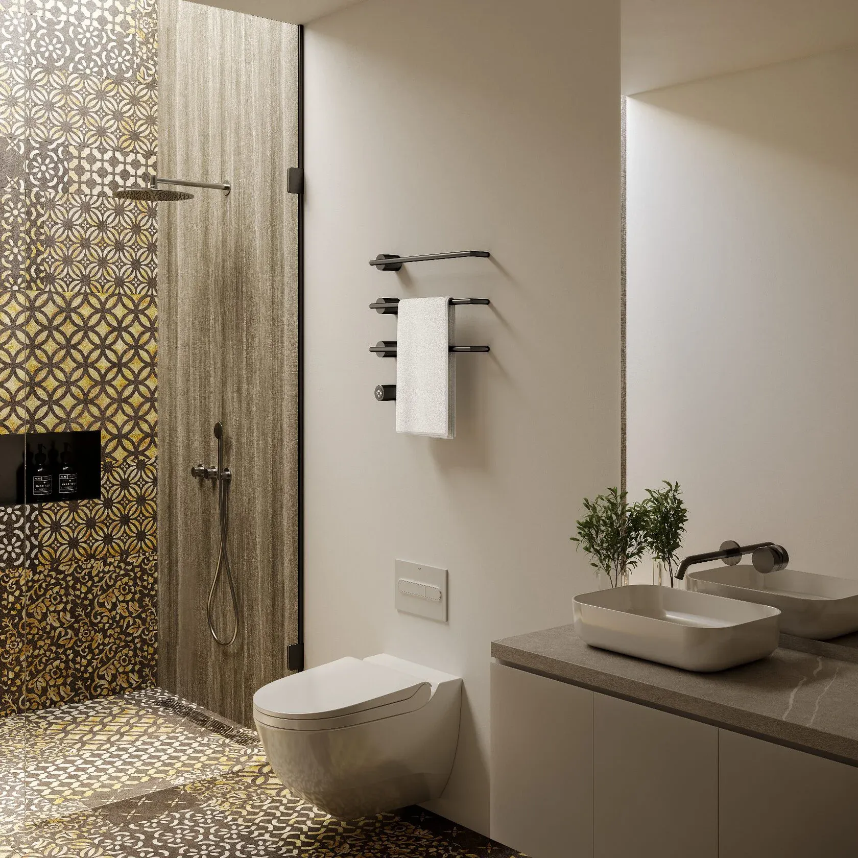 Полотенцесушитель электрический AQUAme AQM3143GM 50x52 см c терморегулятором графит матовый