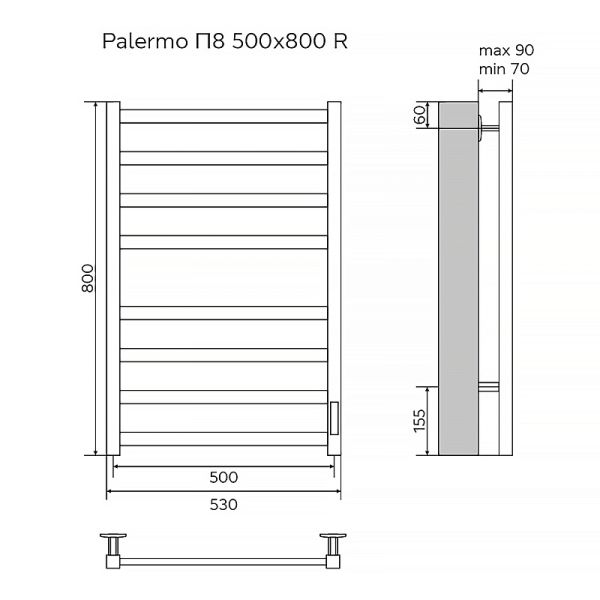 Полотенцесушитель электрический Azario Palermo AZ83858B 50x80 см чёрный