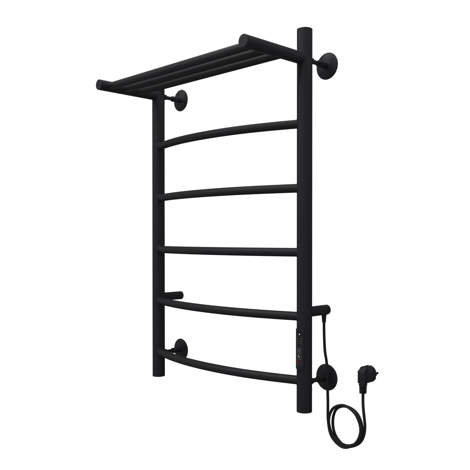 Полотенцесушитель электрический AZARIO VERONA AZ04858PB 500/800 5 секций, с полкой, тен справа, черный