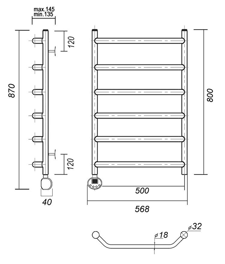 М/о расстояние (межосевое расстояние): 500Количество перекладин: 6Коллекция: ЛаураТип: электрическиеЦвет: золотоМощность, Вт: 300Ширина (мм): 532Высота (мм): 800Глубина (мм): 145-135Вес: 7,1Объем: 0,070125Тэн/подключение: подключение слеваСтрана: РоссияГарантия: 2 года