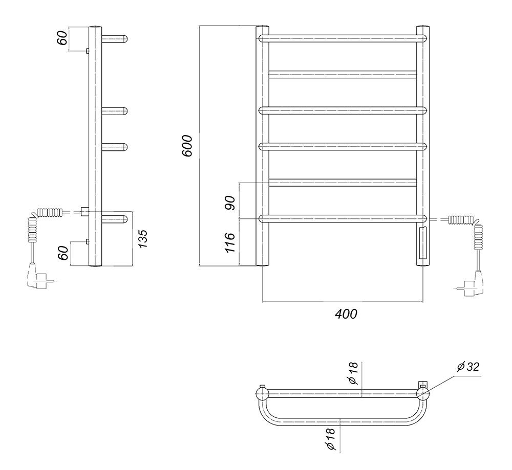 М/о расстояние (межосевое расстояние): 400Количество перекладин: 6Коллекция: ОрфейТип: электрическиеЦвет: черныйМощность, Вт: 85Ширина (мм): 432Высота (мм): 600Глубина (мм): 165-175Вес: 3,8Объем: 0,024Тэн/подключение: справаСтрана: РоссияГарантия: 2 года