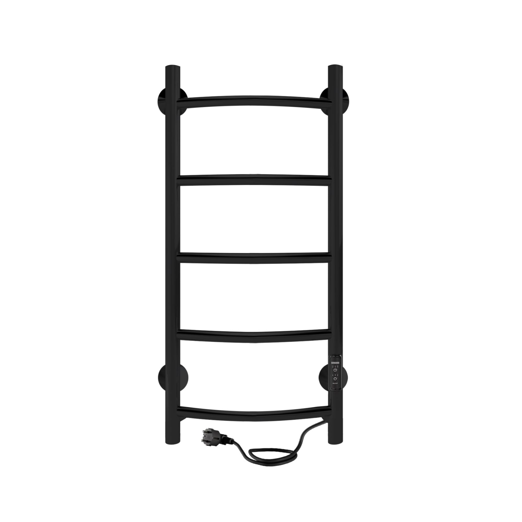 Полотенцесушитель электрический INDIGO Arc Lux. Изделие в форме «лесенка» с дугообразными перекладинами выполнен в цвете «Черный Муар». Качественная металлообработка в местах соединений обеспечивает плотное прилегание прокладки.