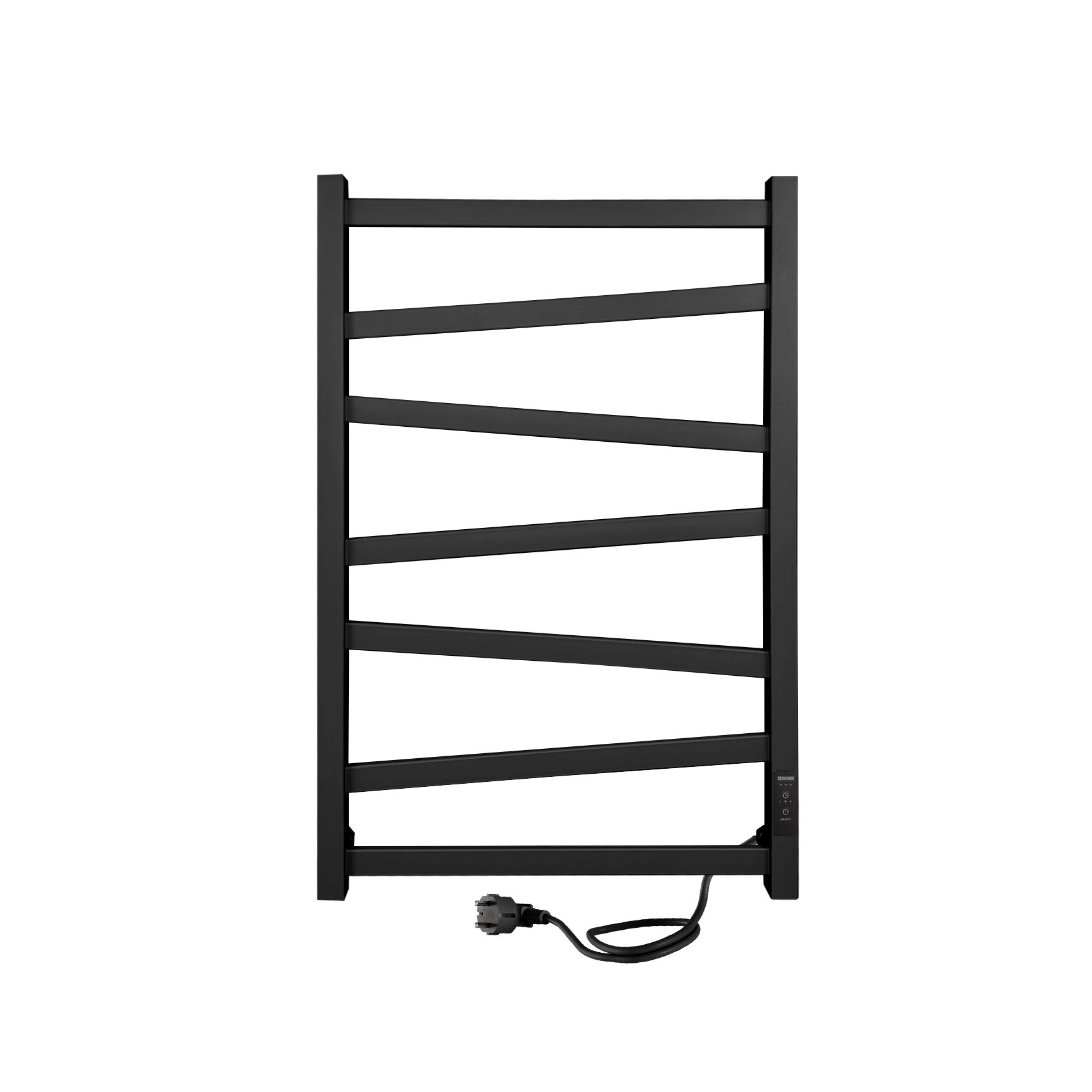 Полотенцесушитель электрический INDIGO Element с терморегулятором и таймером в цвете «Черный Муар». Форма - дизайн-лесенка, позволяет сушить одновременно большое количество текстильных изделий. Электрический полотенцесушитель для ванной выполнен из профильной трубы, имеющей в сечении форму прямоугольника/квадрата.