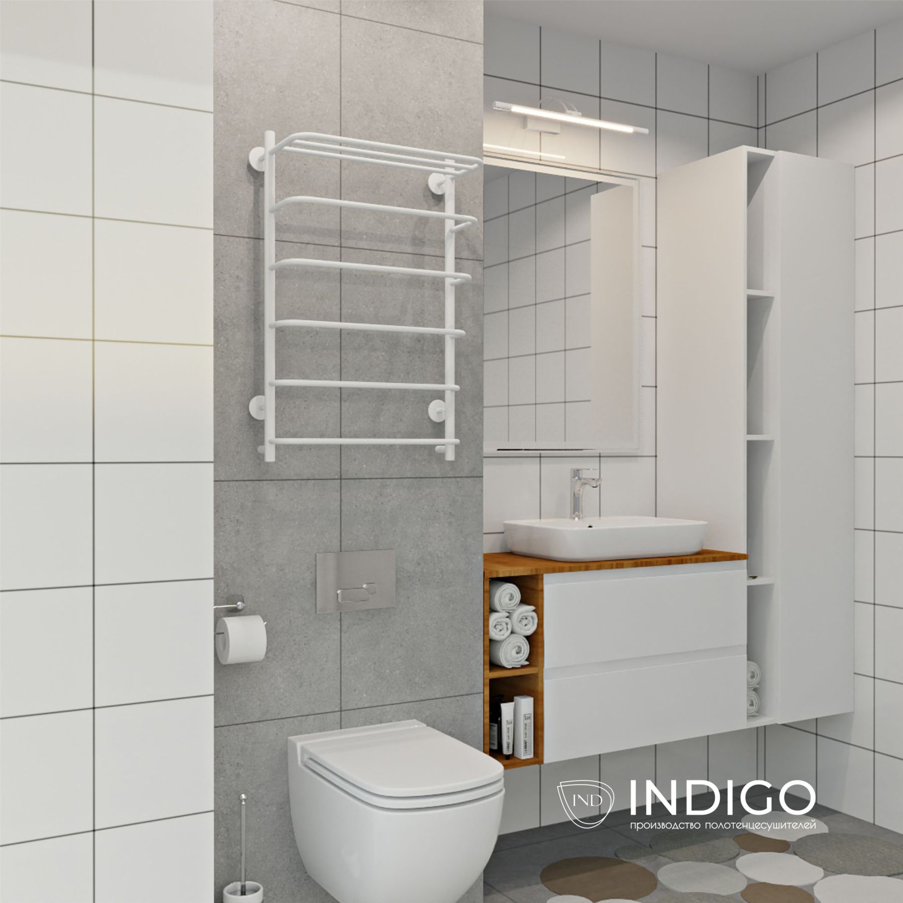 Полотенцесушитель электрический Indigo Hit LHE80-50WMR с полкой 80x50 см белый матовый