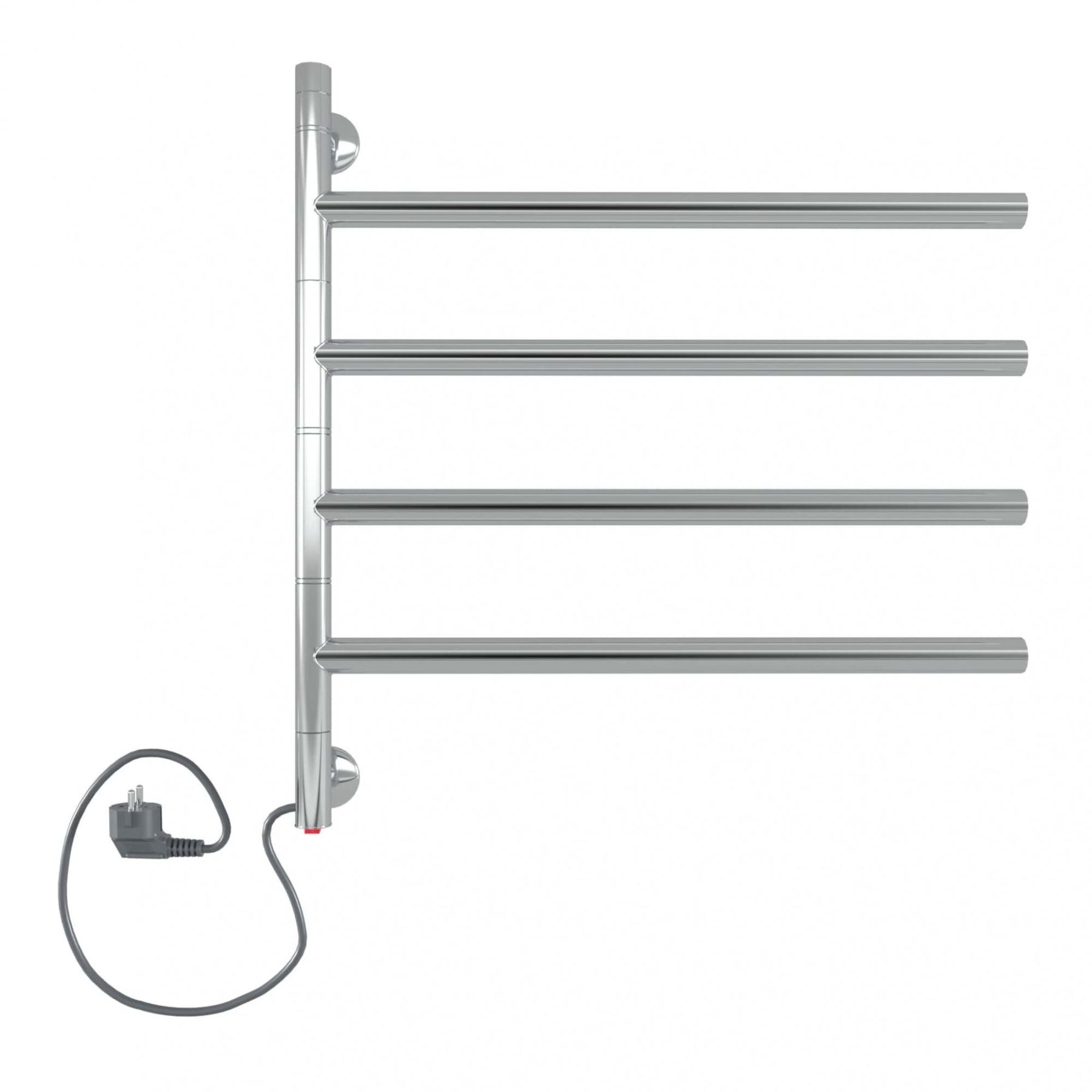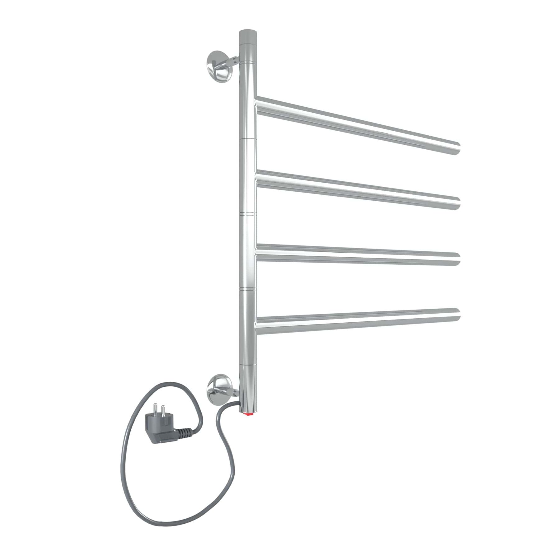 Полотенцесушитель электрический INDIGO Strela с кнопкой включения в нижней части стойки. Подключение через прямой провод. Длина прямого провода 1,1 метра.