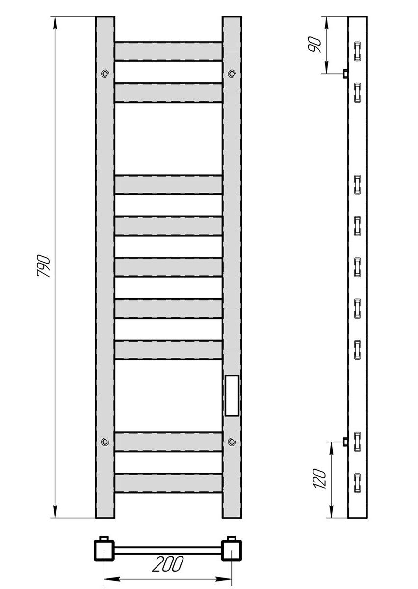Полотенцесушитель электрический Laris Флавиа 73207659 правый П9 20x80см чёрный муар купить