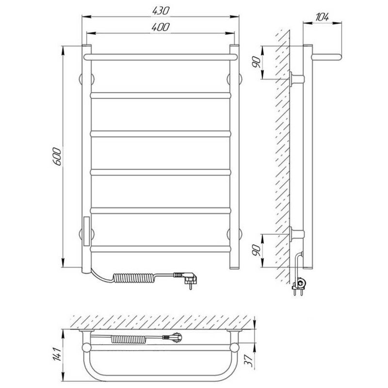 Полотенцесушитель электрический Laris Прайм ЧКЧ П6 400x600 L 73207592 Черный муар купить