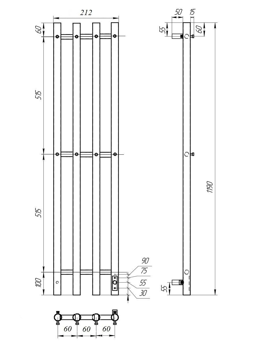 Полотенцесушитель электрический Point Деметра PN12832B П3 18x120см диммер справа чёрный купить