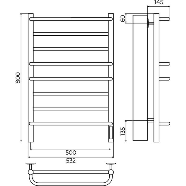 Полотенцесушитель электрический арт.: 4670078554598. Бренд: Terminus. Тип подключения: справа. Материал: конструкционная сталь. Теплоноситель: греющий кабель. Форма: лесенка.