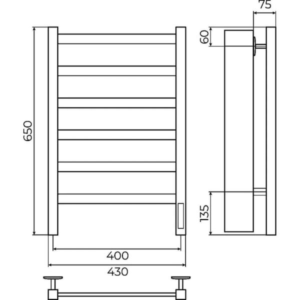 Полотенцесушитель электрический Terminus Ното 4670078557162 П6 40х65 см хром