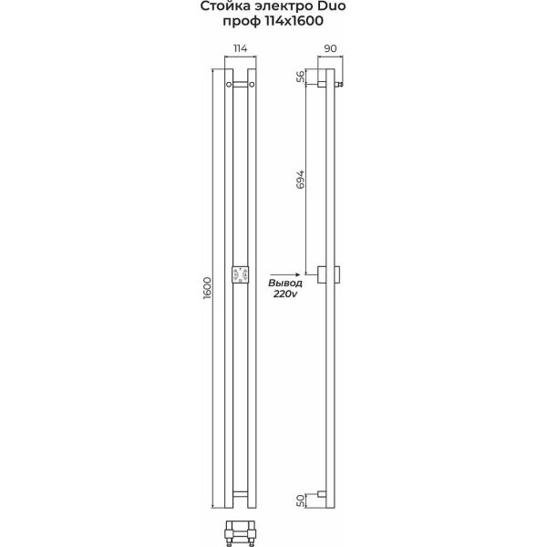Полотенцесушитель электрический Terminus Стойка DUO 4670078528377 160 см хром купить