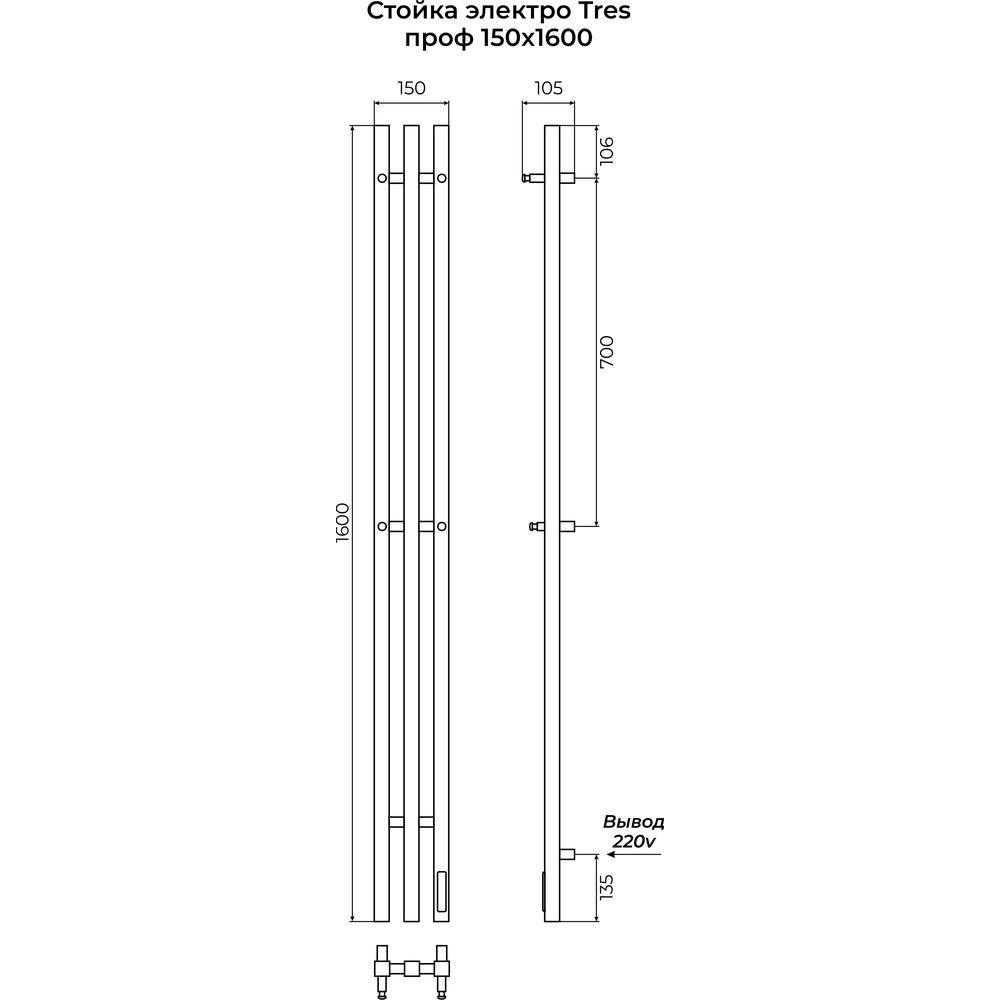Полотенцесушитель электрический Terminus Стойка TRES 4670078554673 160 см хром