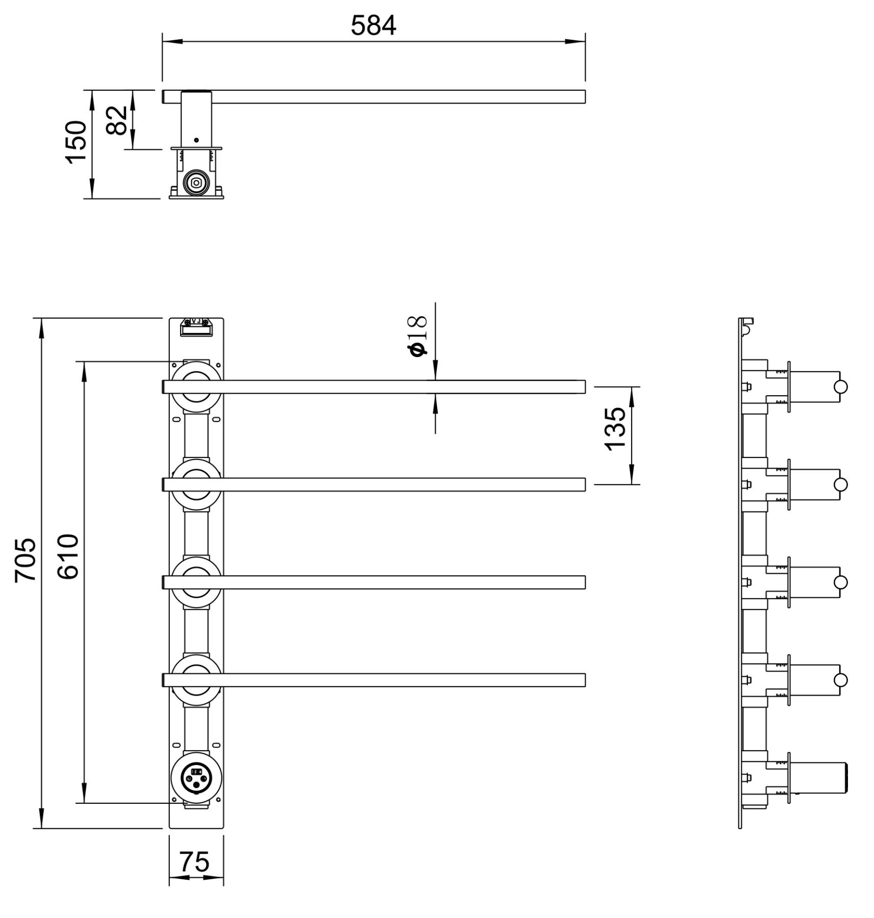 Полотенцесушитель электрический встраиваемый WONZON & WOGHAND DORTMUND, Белый матовый (WW-A364-MW)
