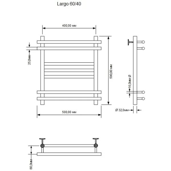 Водяной полотенцесушитель Aquanet Largo 60х40 266743 от производителя AQUANET. Форма лесенки отл... Подробнее