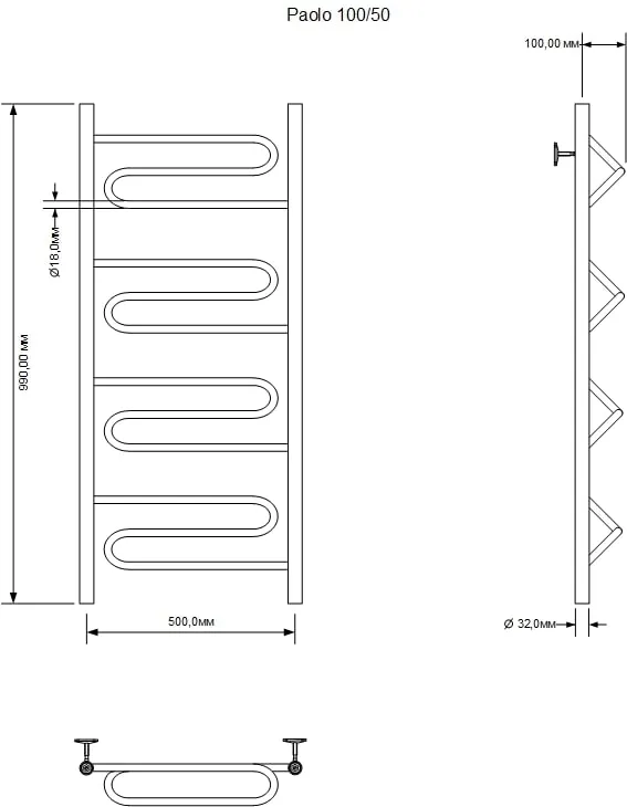 Полотенцесушитель водяной Aquanet Paolo 266734 100x50 см хром