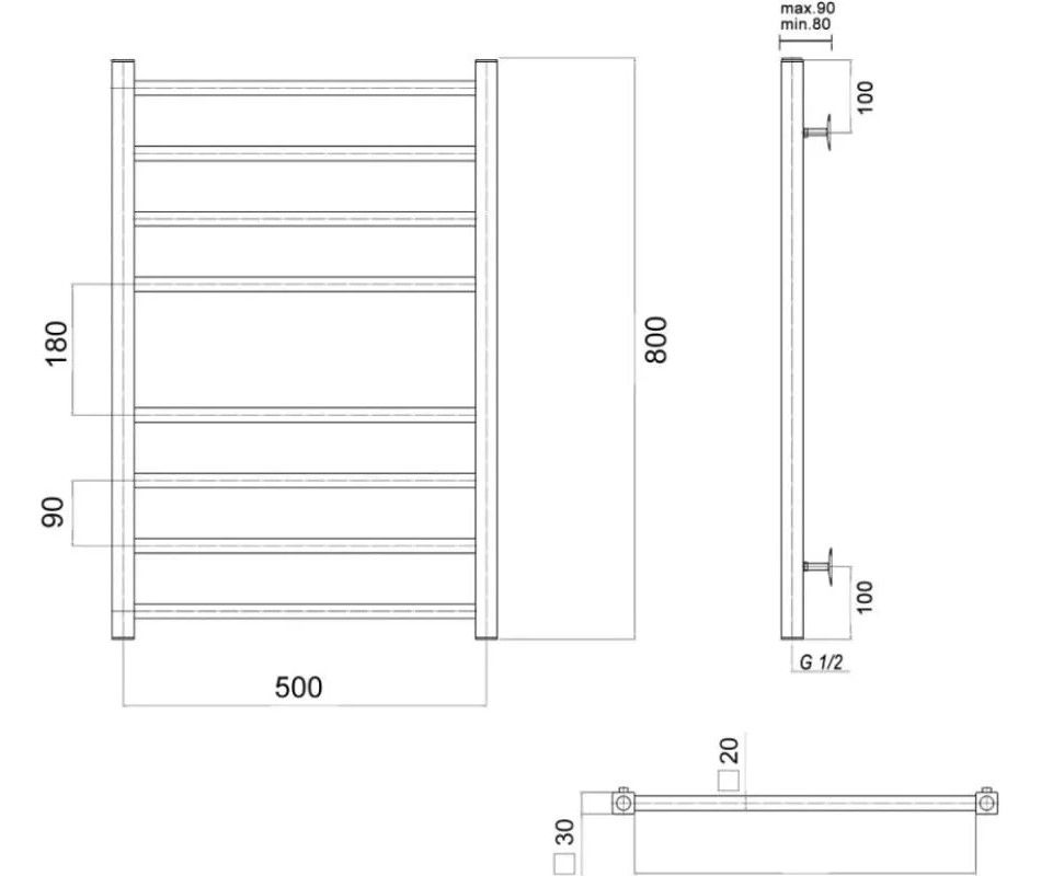 Полотенцесушитель водяной Domoterm Квадро П8 ширина 50 см высота 80 см, нижнее подключение, цвет золото, Квадро П8 500х800 золотоВодяной полотенцесушитель из нержавеющей пищевой стали. Труба электросварная. Толщина 2 мм. Вертикальные стойки имеют диаметр 32 мм., горизонтальные перекладины выполнены из трубы диаметром 18мм. Подключение к ГВС нижнее, резьба внутренняя, 1/2".
