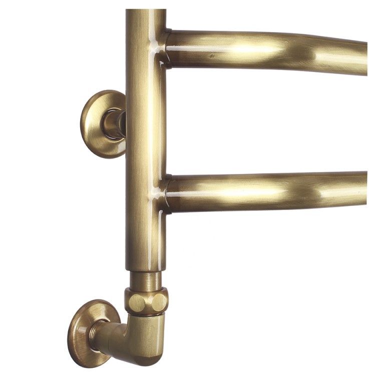 Водяной полотенцесушитель из латуни марки Л59. Цвет «Античная бронза».Труба цельнотянутая.Вертикальные стойки имеют диаметр 28 мм., горизонтальные перекладины выполнены из трубы диаметром 28 мм.Подключение к ГВС нижнее, резьба внутренняя, 1/2".Поставляется с комплектом фитингов для подключения к воде