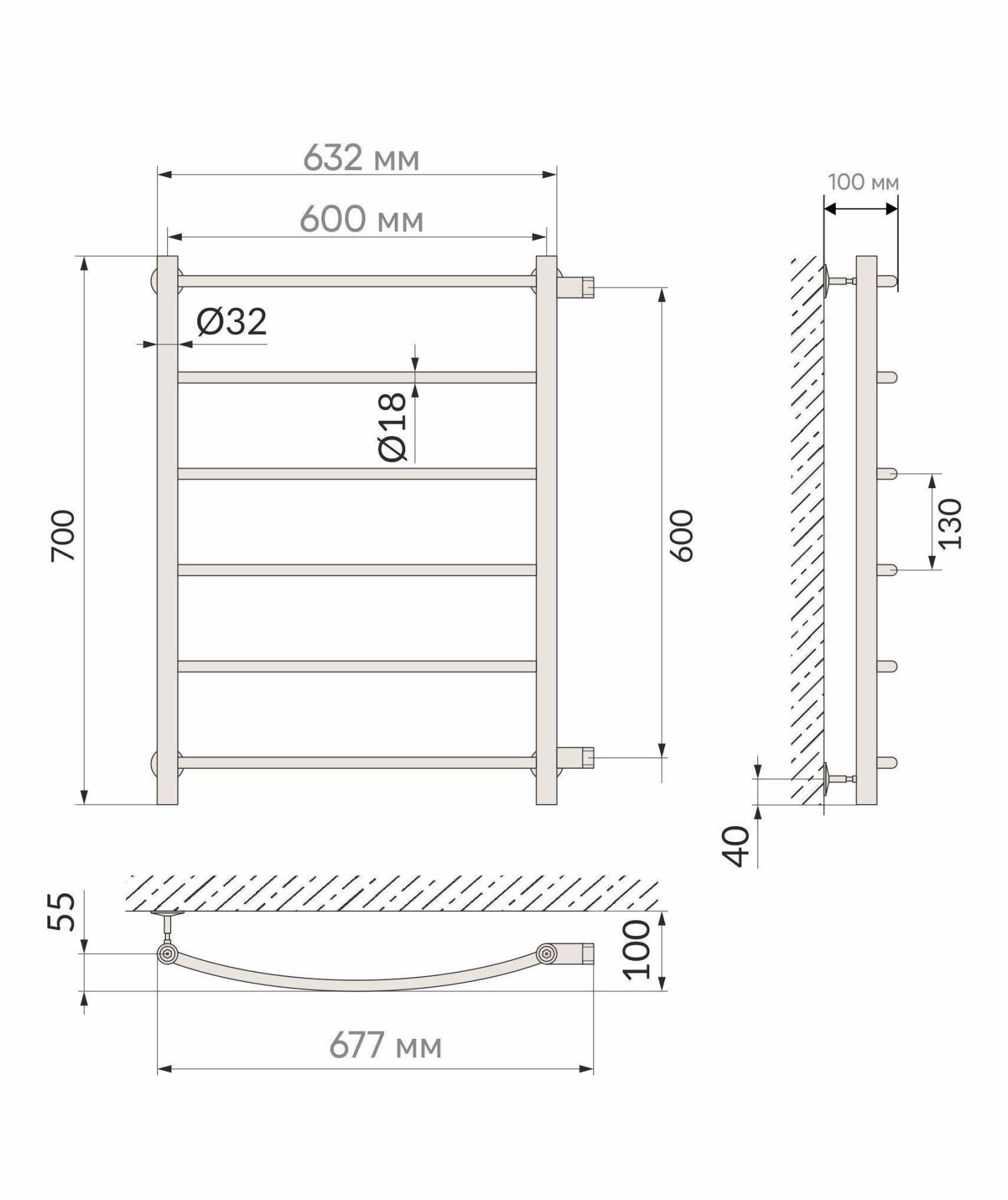 Полотенцесушитель имеет дугообразные перекладины, что очень удобно при эксплуатации.