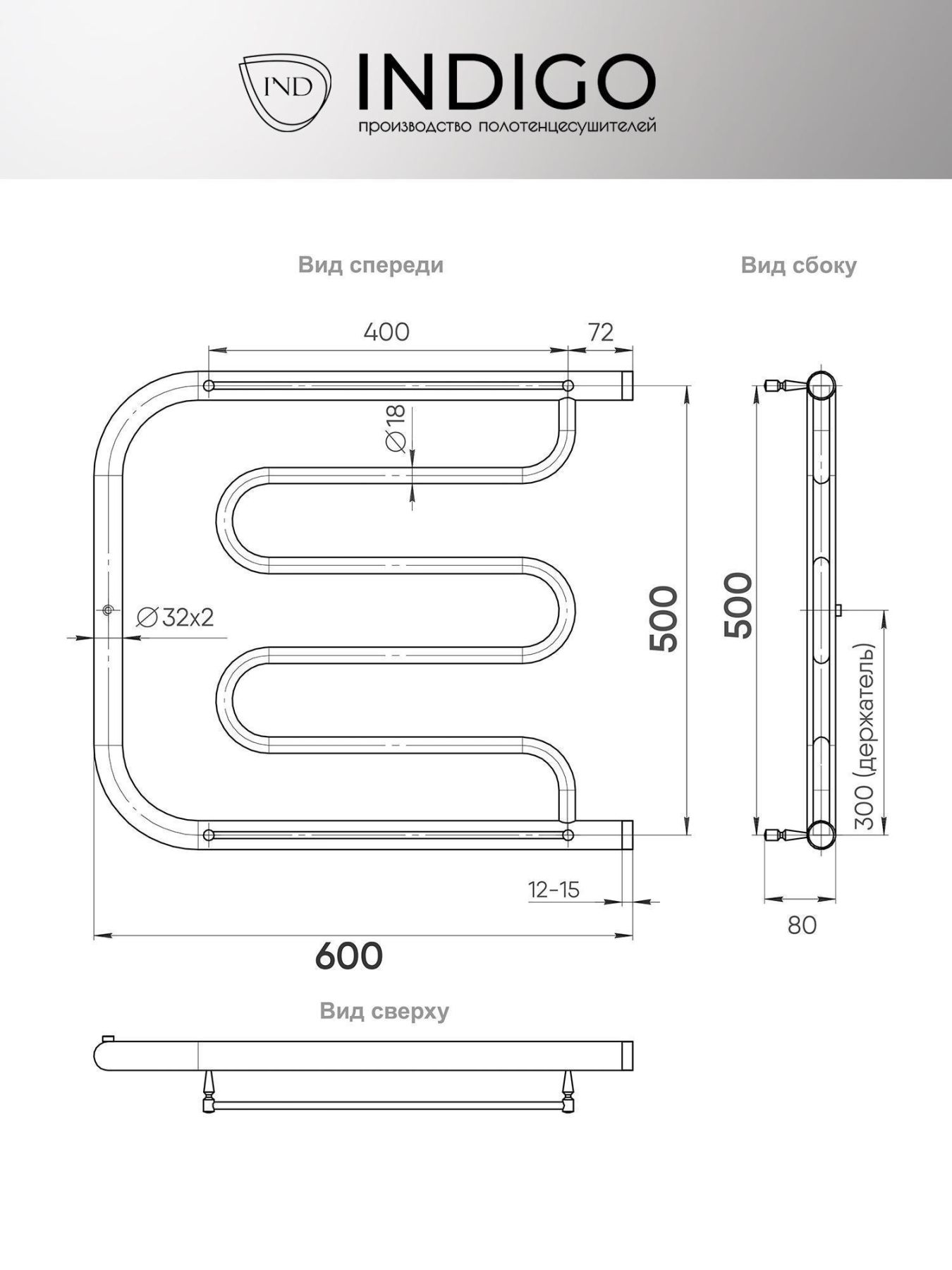 Полотенцесушитель водяной Indigo Фокстрот Standart FSW50-60P с полкой 50x60 см хром