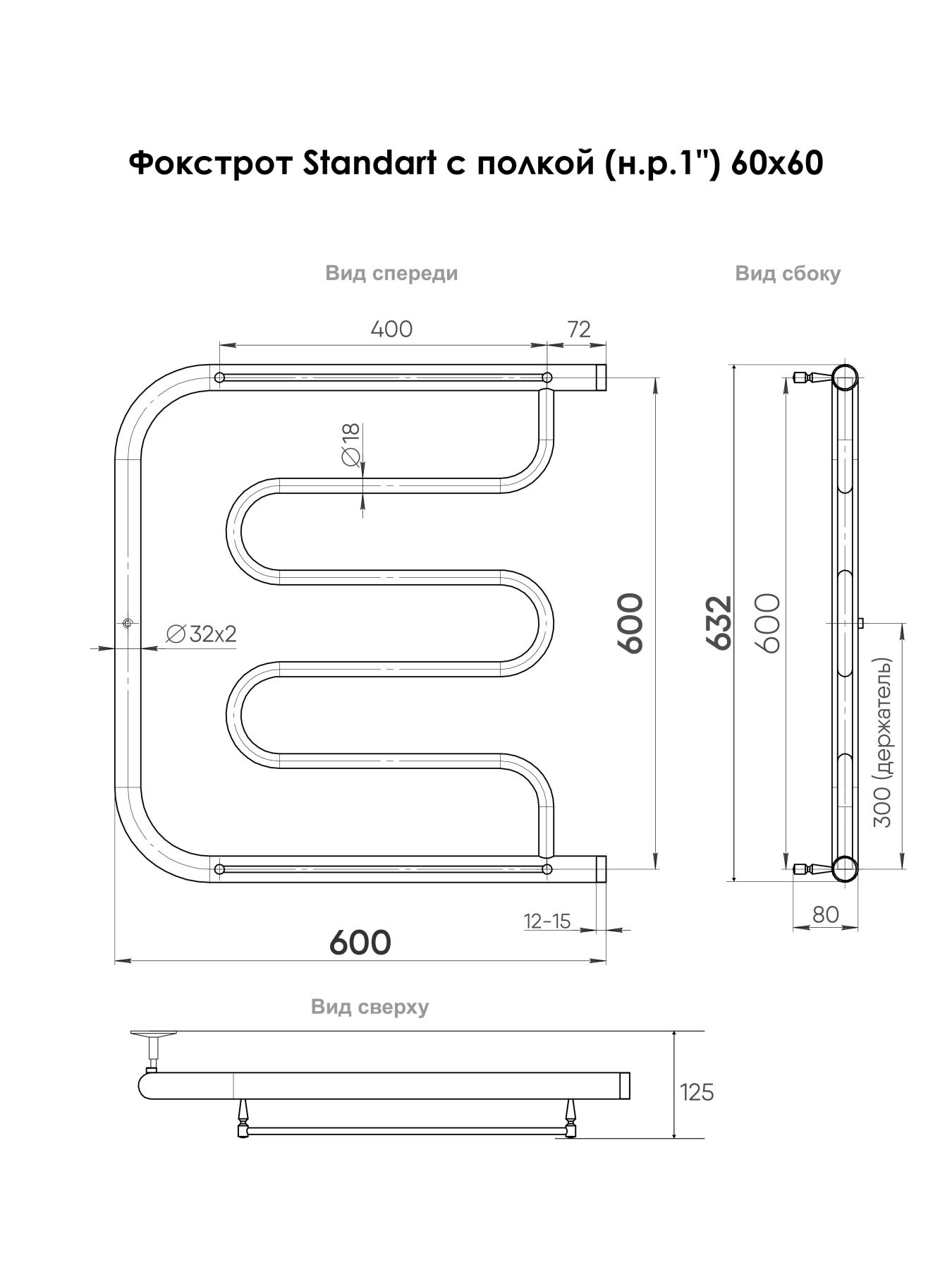 Полотенцесушитель водяной Indigo Фокстрот Standart FSW60-60P с полкой 60x60 см хром