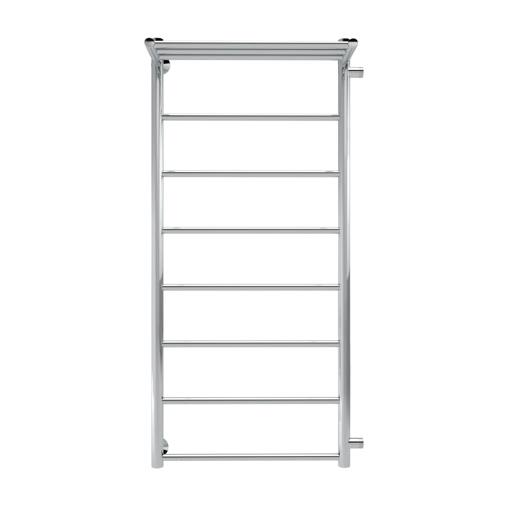 Водяной полотенцесушитель в форме Лесенки Line с полочкой – это оригинальный элемент не только с прямыми или накладными перекладинами, но и дополнительной полкой для полотенец, халатов и других мелочей.