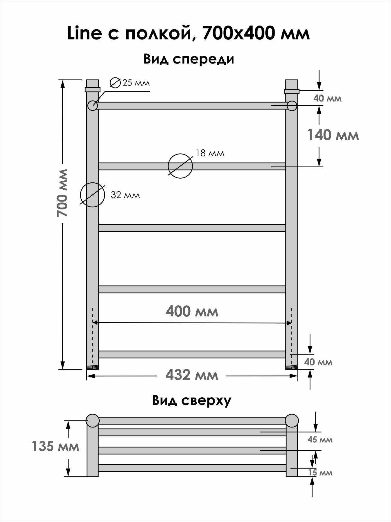 Водяной полотенцесушитель в форме Лесенки Line с полочкой удобен и функционален в использовании. Полочку можно использовать для хранения полотенец, халатов и других мелочей. Полотенцесушитель для ванной выполнен из нержавеющей стали. Имеет универсальный способ подключения.
