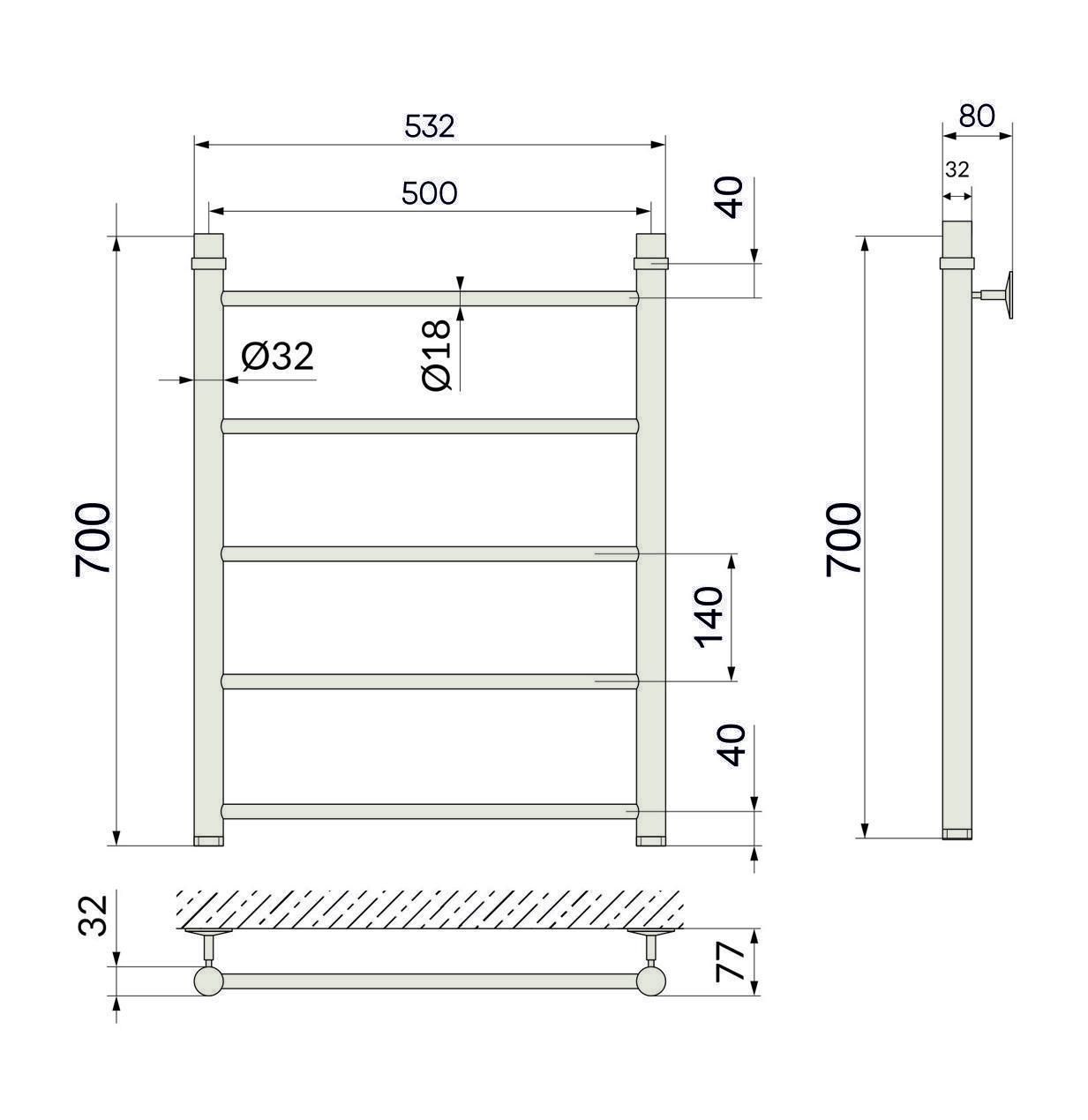 Полотенцесушитель боковой удобен в подключении, функционален в использовании. Для монтажа необходимо отдельно приобрести нужные вам фитинги. Гарантия на изделие – 5 лет.