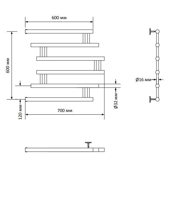 Фокстрот полотенцесушитель благодаря своей необычной форме станет украшением интерьера. Помогает предотвратить появление конденсата и плесени в ванной комнате. Имеет боковое подключение.