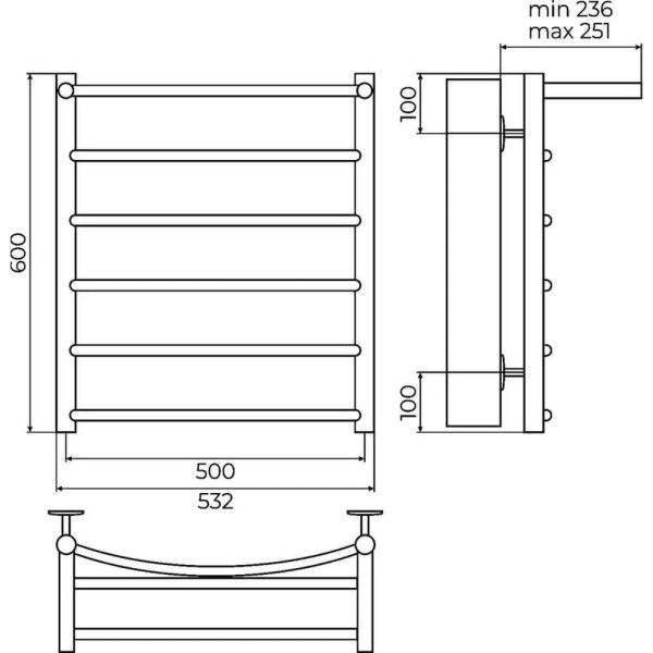 Полотенцесушитель водяной арт.: 4670078556752. Бренд: Terminus. Тип подключения: нижнее. Материал: нержавеющая сталь. Теплоноситель: вода. Форма: лесенка.