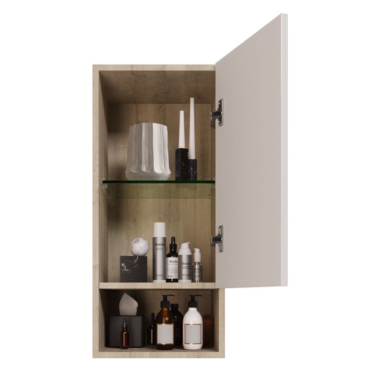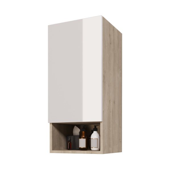 Полупенал PERFECTO, 35 см, подвесной, универсальный, 1 дверца, 1 стеклянная полка, дуб эврика/белый глянец