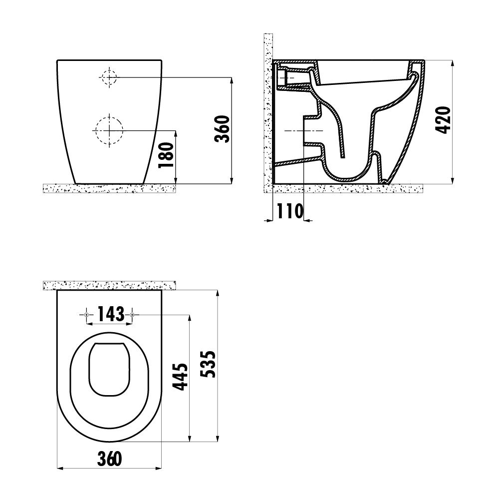 - Укороченный унитаз:нет