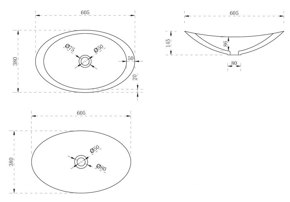 Раковина ABBER Kristall AT2808Onyx 60см чёрный