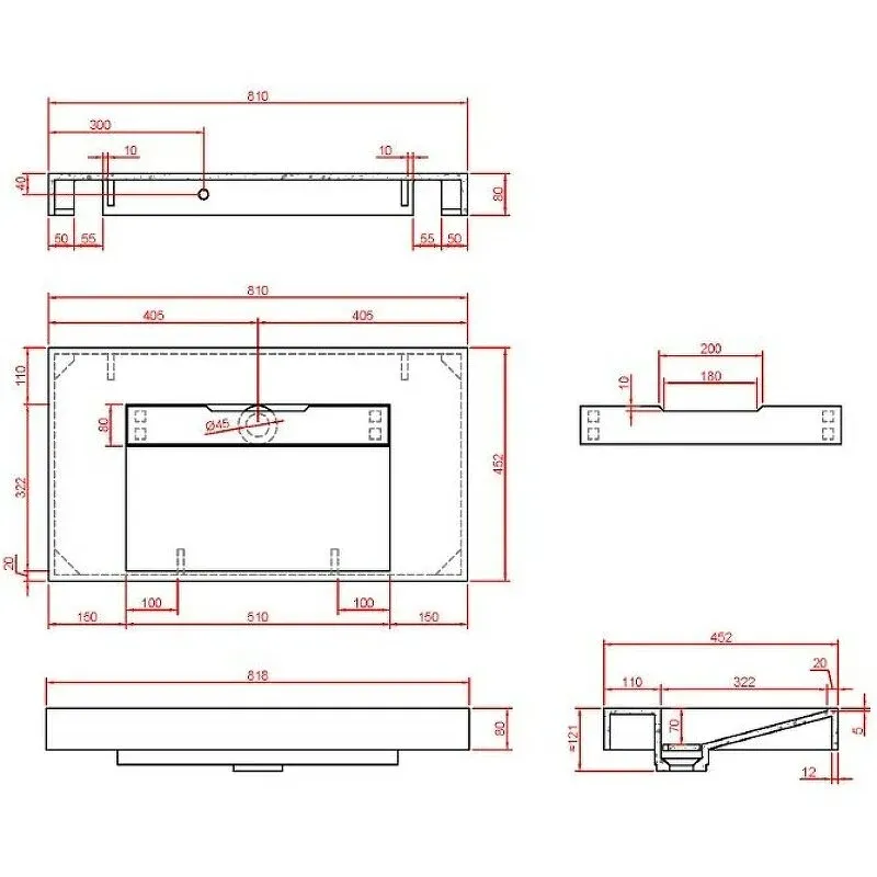 Размерный ряд раковин-моноблок 80см, 100см. 120см. 140см(возможна установка 2 смесителей).