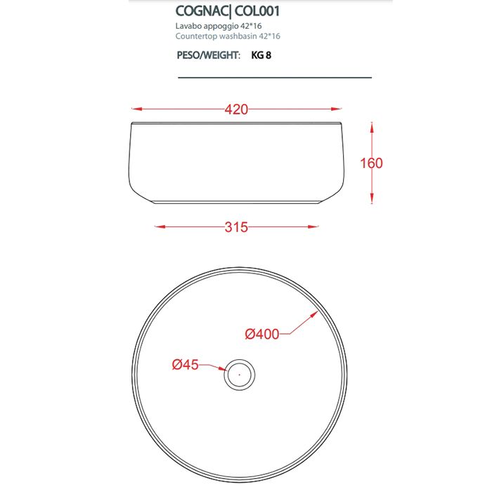 Раковина ArtCeram Cognac COL001 43 00 Green foresta 42 см купить
