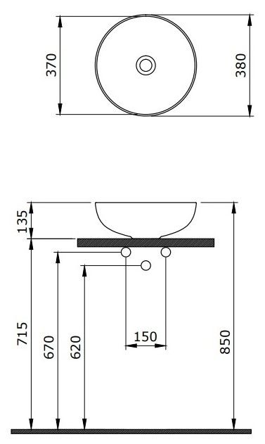 Накладная раковина из санфарфора Berges Ego диаметром 38 см.Высота 13,6 см.Круглой формы, без отверстия под смеситель, глянцевая белая.Гарантия 10 лет*Донный клапан необходимо приобрести отдельно